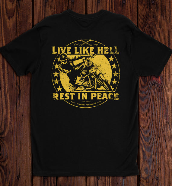 Champ's Speedshop - Live Like Hell, Rest in Peace T-shirt