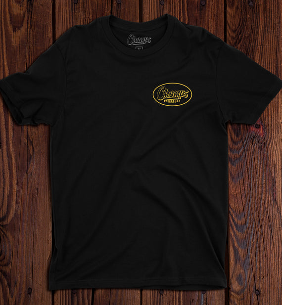 Champ's is in full support of you living your life like hell, because if you don't how will you ever be able to rest in peace. Let others know your willing to live like hell with this badass T-shirt.